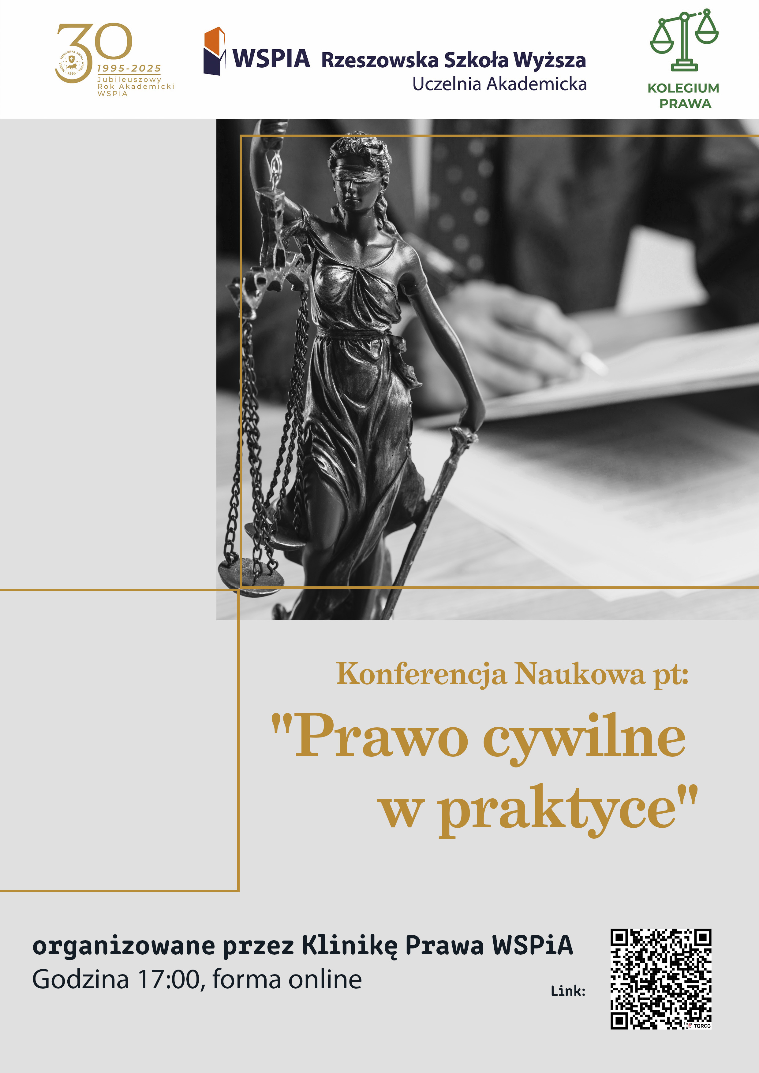 - Konferencja Naukowa pt.: "Prawo cywilne w praktyce", organizowane przez Klinikę Prawa WSPiA. Godzina 17:00, forma online. Link: https://teams.microsoft.com/meet/36799122239534
