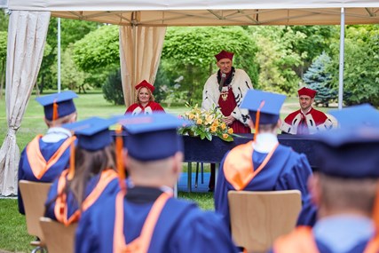 – Dziś w imieniu całej społeczności akademickiej, władz uczelni, kadry naukowo-dydaktycznej gratuluję Państwu ukończenia studiów i osiągniętego przez Państwa ogromnego sukcesu. Sukcesu okupionego wyrzeczeniami, wymagającego spędzenia wielu godzina na wykładach, ćwiczeniach, warsztatach i nad książkami. Pamiętajcie, że wbrew pojawiającym się opiniom, studia to czas, w którym osiągamy bardzo wiele. Rozpoczynając swoją karierę zawodową, zobaczycie, jak przydatna jest zdobyta wiedza i praktyka, kontakty, umiejętność pracy w grupie. Studia udoskonaliły Państwa warsztat intelektualny, otwierając Was na nowe zjawiska i otaczająca rzeczywistość. To pozwoli łatwiej pokonywać trudności, które spotkacie w życiu. To wszystko będzie procentować. Bądźcie Państwo dumni z Waszego sukcesu – gratulował absolwentom prof. Jerzy Posłuszny.