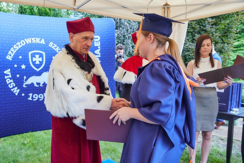 Blisko 100 tegorocznych absolwentów WSPiA Rzeszowskiej Szkoły Wyższej w sobotę 31 lipca 2021 r. odebrało dyplomy ukończenia studiów. Tym razem uroczysta Graduacja zorganizowana została w Ogrodach wypoczynkowych WSPiA. Uczestniczyły w niej władze uczelni, wykładowcy oraz rodziny osób, które studiowały na kierunkach: „administracja”, „bezpieczeństwo wewnętrzne”, „prawa” oraz „zarządzanie”.