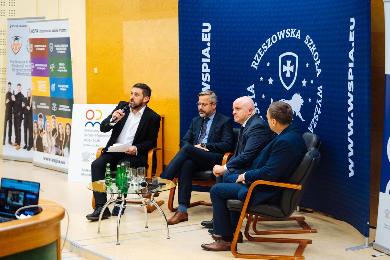 Jak rosyjska propaganda wpływa na opinię publiczną w Polsce i w Europie? W jaki sposób dezinformacja stała się jednym z najgroźniejszych narzędzi polityki Kremla? O tych kwestiach dyskutowali uczestnicy debaty pt. „Dezinformacja jako rosyjska broń”, która odbyła się 6 października 2025 r. w WSPiA Rzeszowskiej Szkole Wyższej. Wydarzenie zorganizowano we współpracy z Regionalnym Ośrodkiem Debaty Międzynarodowej w Rzeszowie (RODM Podkarpacie).