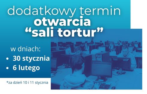 Dodatkowe terminy pozwolą na elastyczne zaplanowanie zaliczeń i dostosowanie ich do indywidualnych obowiązków studentów. W pozostałe dni "Sala Tortur" będzie czynna w standardowych godzinach.