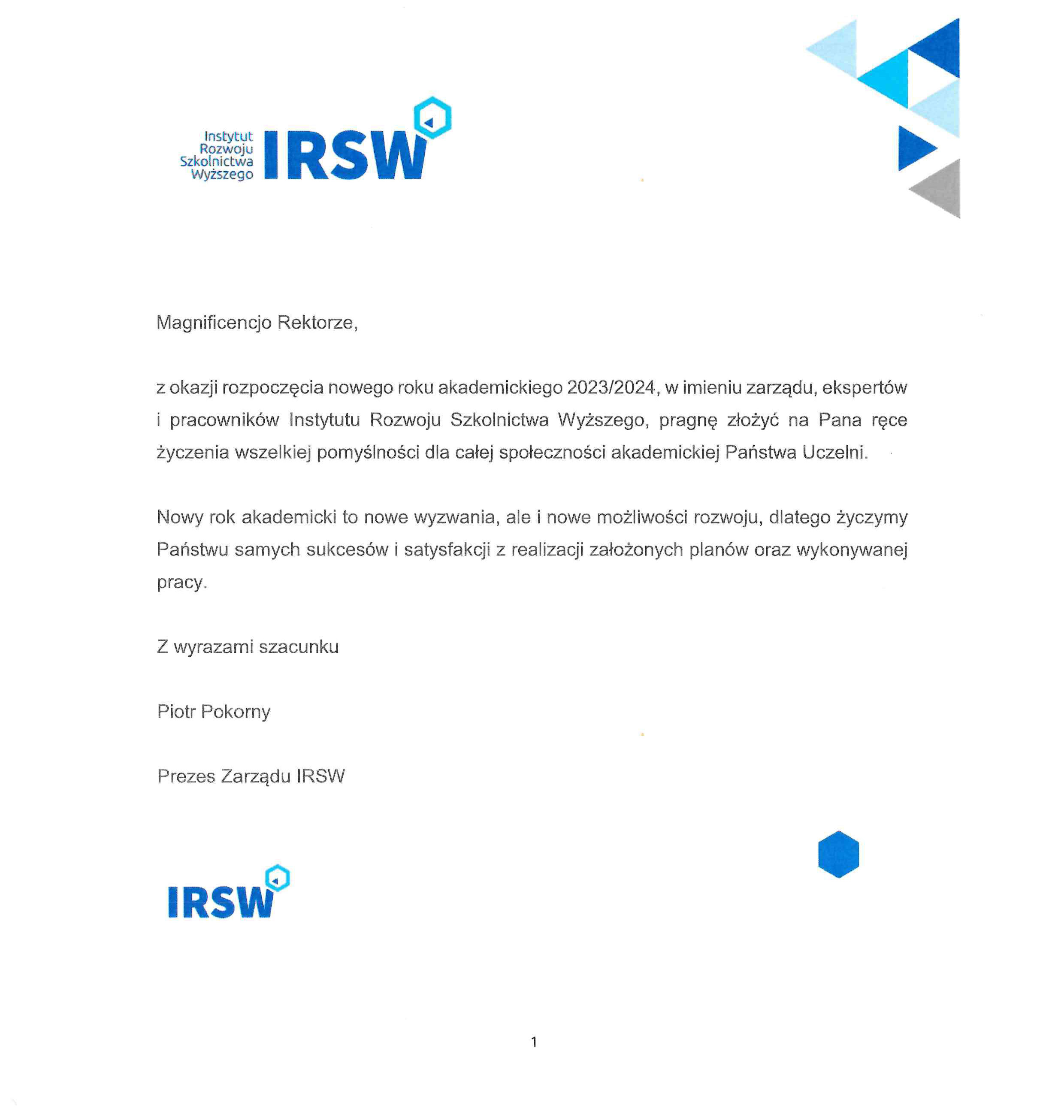- Piotr Pokorny – Prezes Zarządu Instytutu Rozwoju Szkolnictwa Wyższego