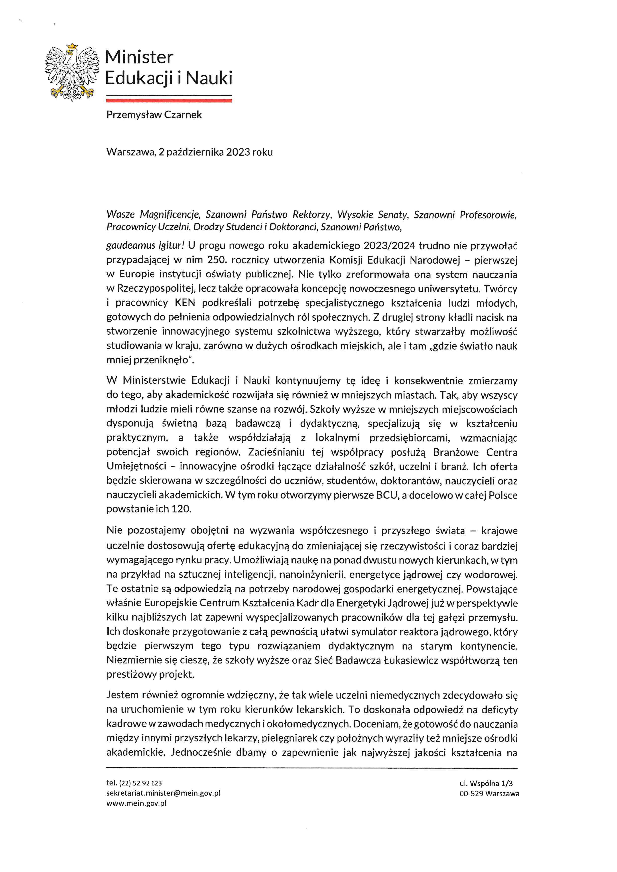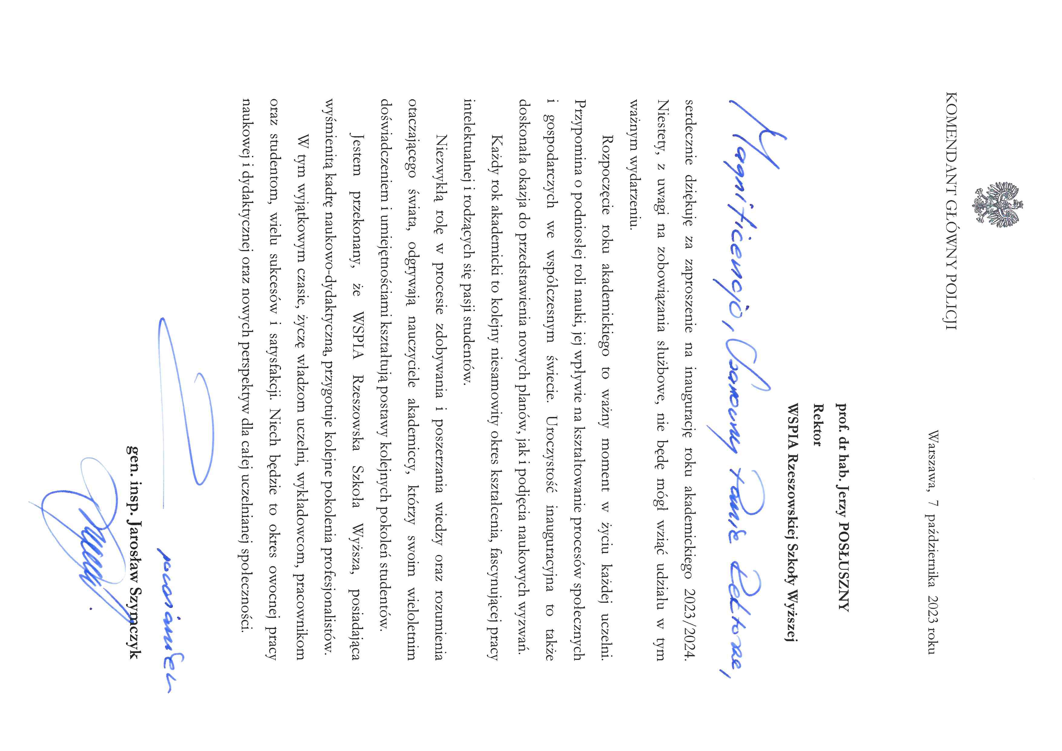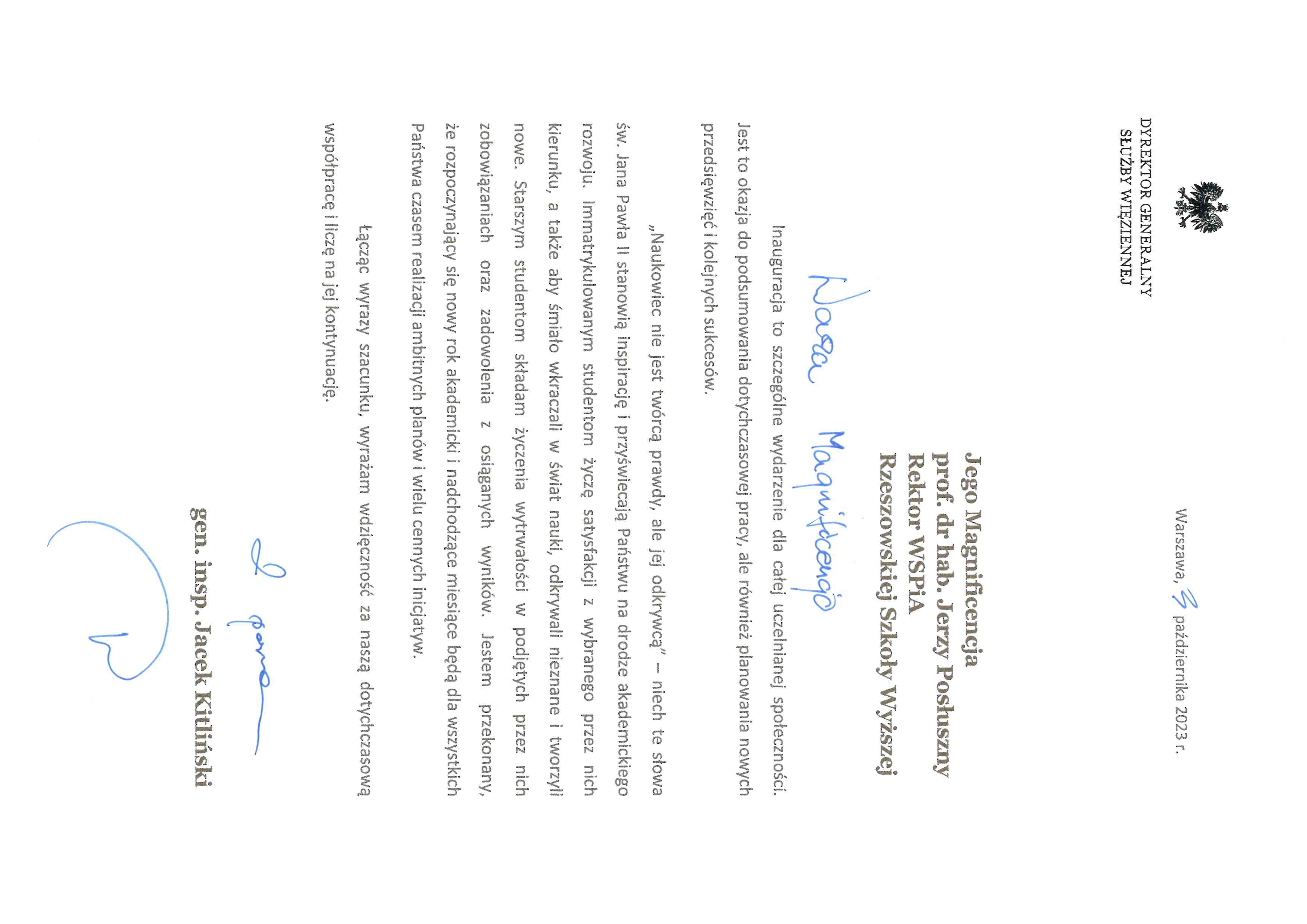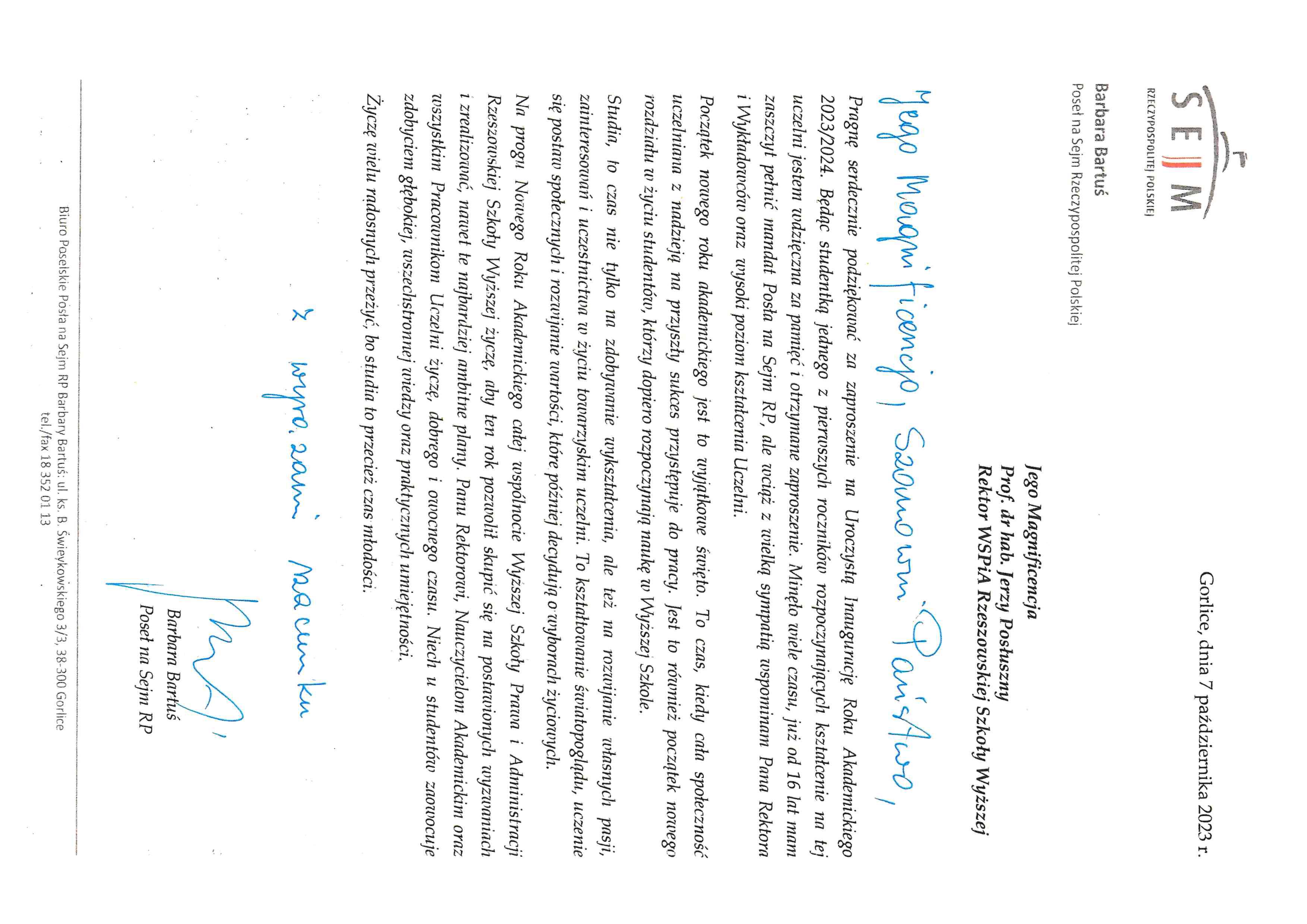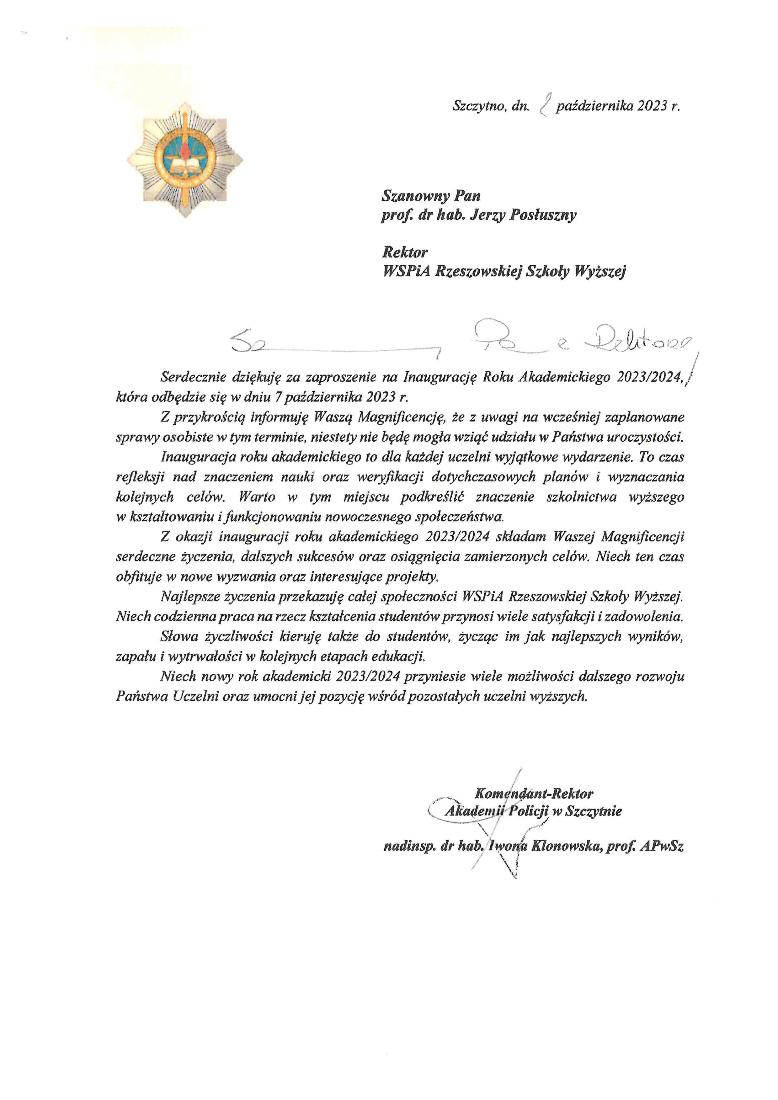 Listy gratulacyjne z okazji Inauguracji roku akademickiego w WSPiA