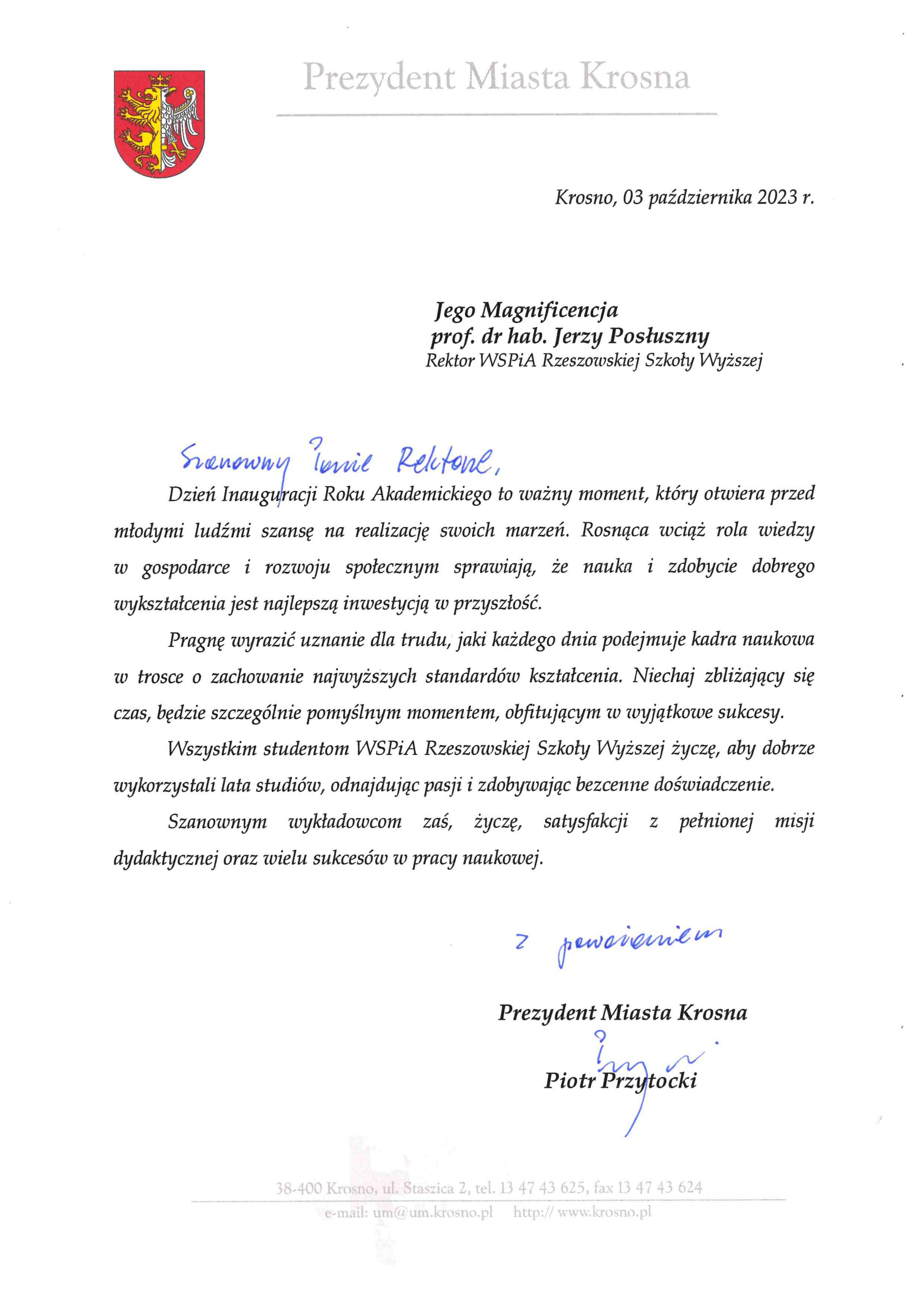 - Piotr Przytocki – Prezydent Miasta Krosna