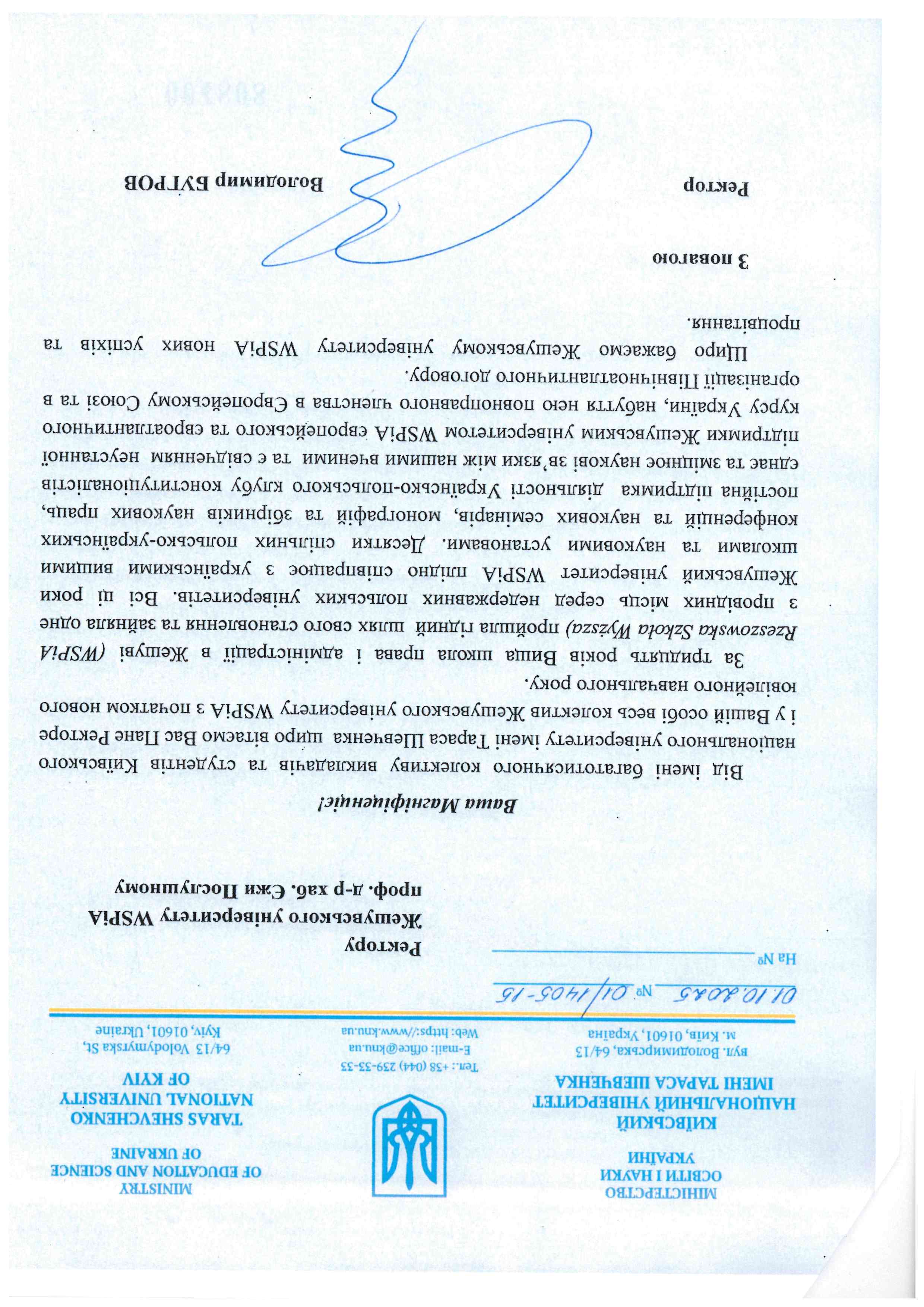 - Profesor Volodymyr Bugrov – Rektor Kijowskiego Narodowego Uniwersytetu im. Tarasa Szewczenki