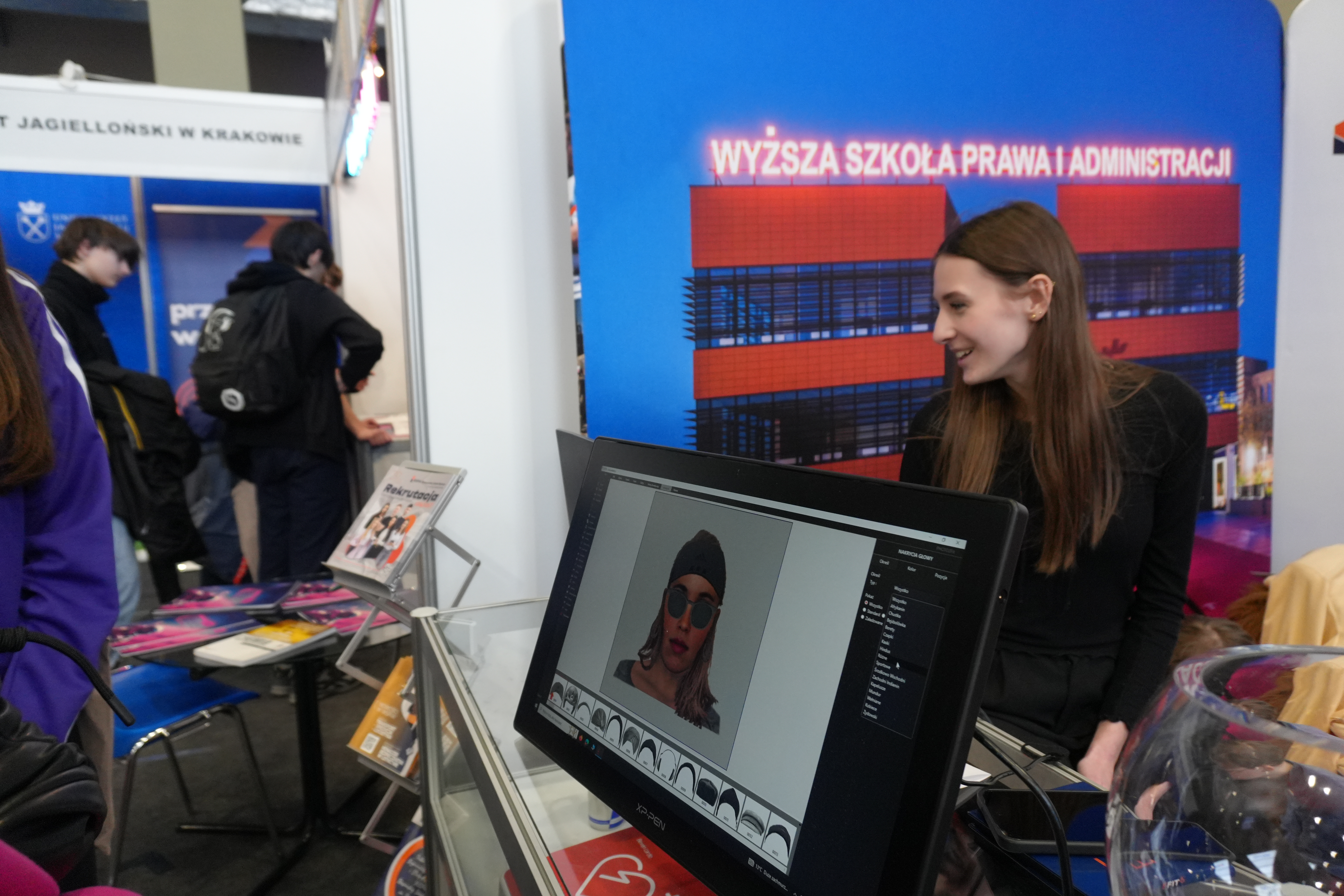 Stoisko WSPiA - podobnie jak pierwszego dnia - tętniło życiem. Uczniowie mogli zobaczyć na żywo działanie wariografu, wykonać odbitki swoich linii papilarnych oraz przyjrzeć się sprzętowi wykorzystywanemu w Pracowni Działań Ratowniczych. Te elementy nie były jedynie widowiskową atrakcją. Dla wielu młodych osób stanowiły dowód, że za kierunkami studiów w naszej Uczelni stoją realne kompetencje i konkretne umiejętności.