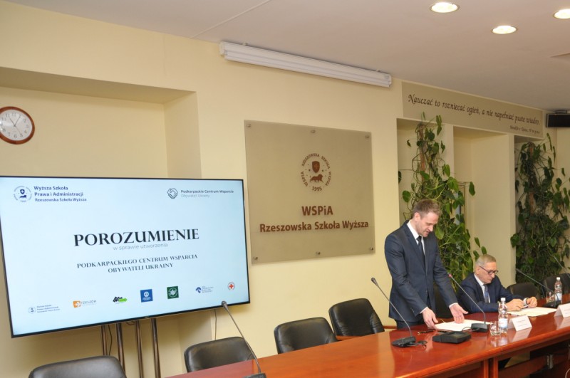 – W ramach Podkarpackiego Centrum Wsparcia Obywateli Ukrainy wszystkie instytucje będą współpracować w zakresie adaptacji społecznej, administracyjnej i zawodowej obywateli Ukrainy migrujących w związku z wojną w Ukrainie. Pomoc będzie udzielana w ramach tematycznych sekcji wsparcia: prawnego, urzędowego, humanitarnego, personalnego oraz pośrednictwa pracy – wyjaśnia dr Przemysław Niemczuk, Prorektor WSPiA.