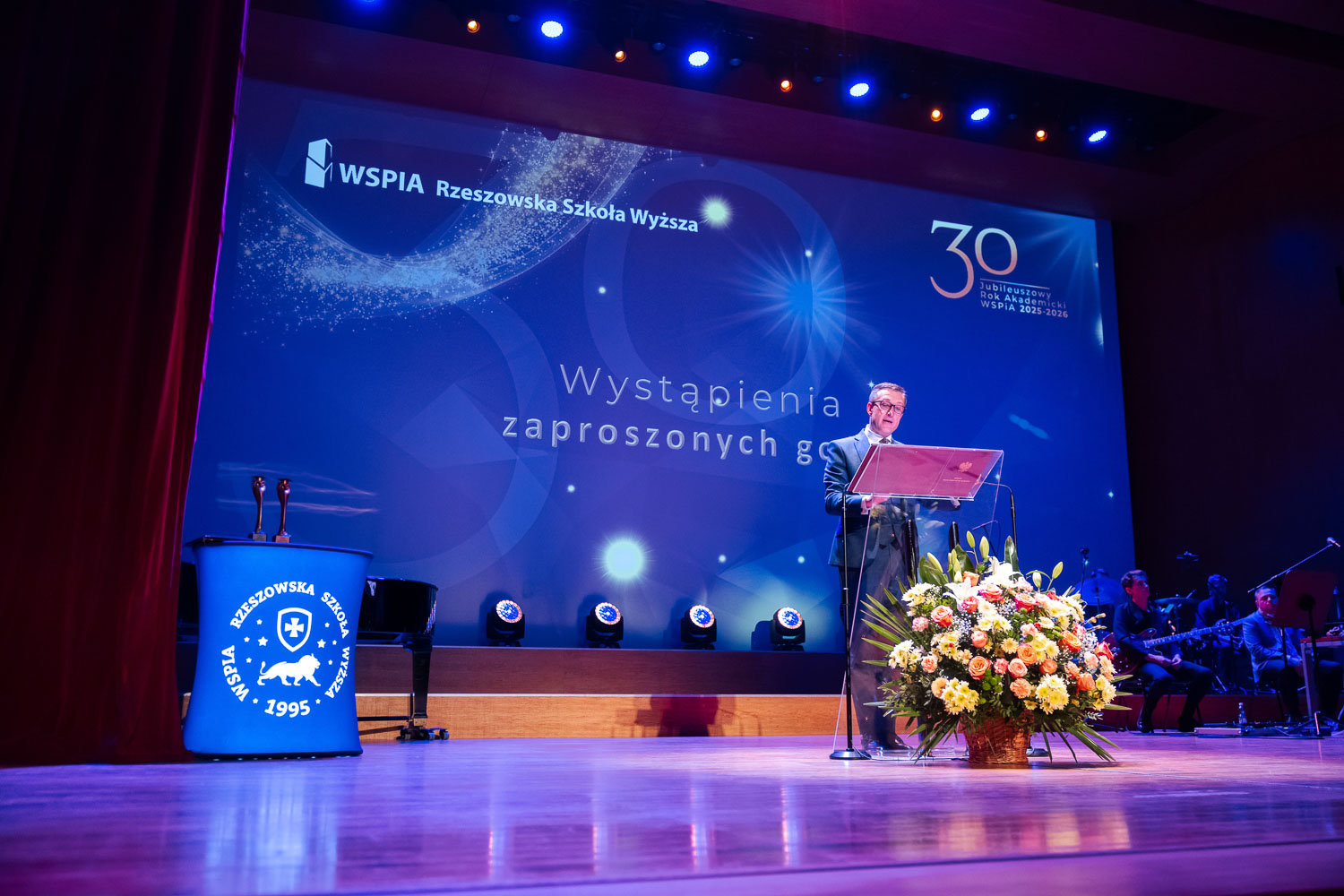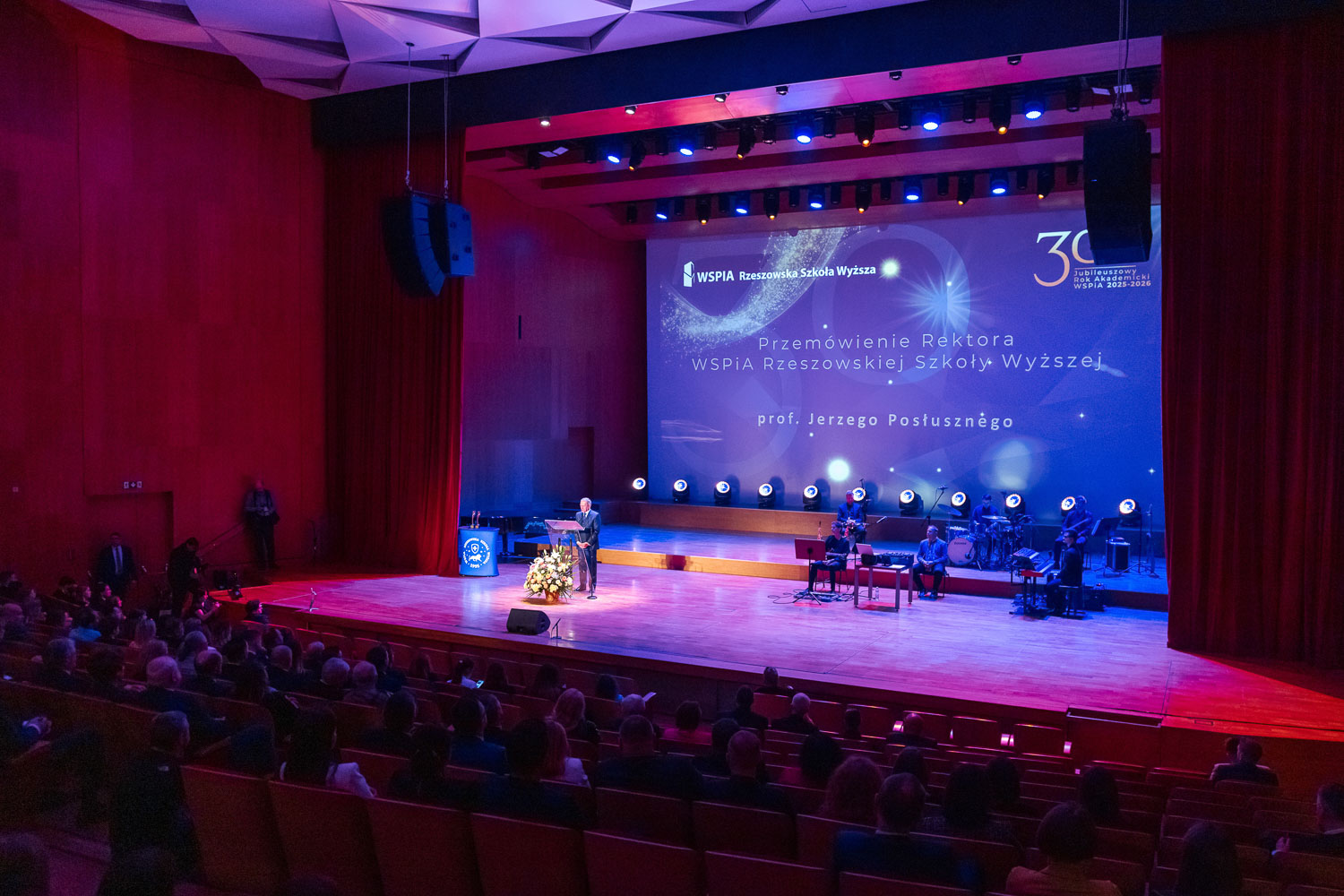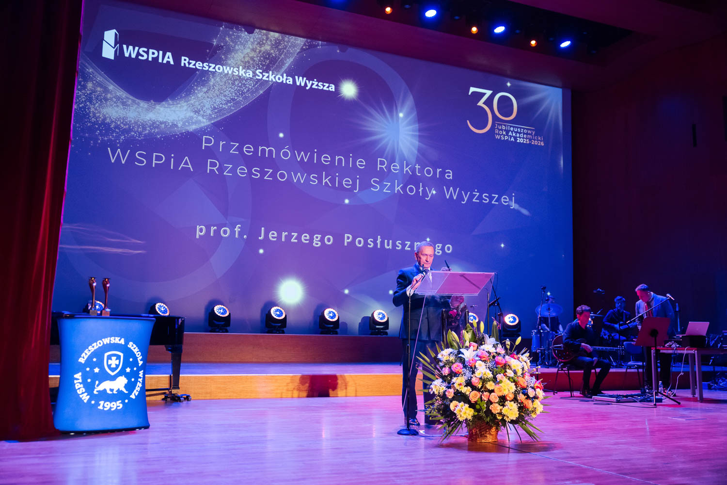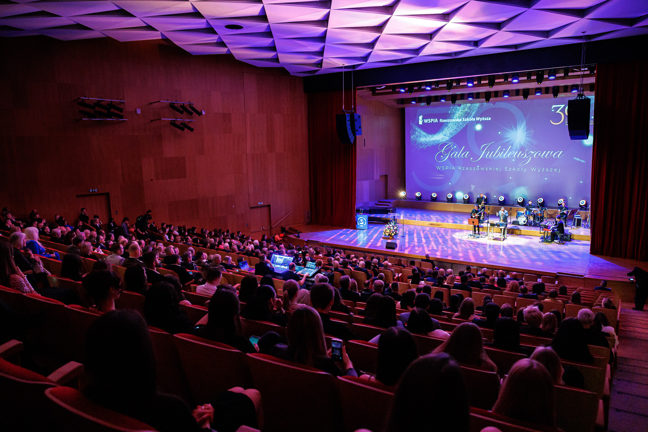 Szanowni Państwo, cóż to był za wieczór! Gala Jubileuszowa WSPiA Rzeszowskiej Szkoły Wyższej zgromadziła przedstawicieli świata nauki, polityki oraz sympatyków i pracowników Uczelni – ludzi, którzy przez lata współtworzyli jej akademicką wspólnotę. Trzy dekady historii spotkały się tego wieczoru w jednej sali, na jednej scenie, splatając się w opowieść o miejscu budującym swoją tożsamość na fundamencie niezwykłych początków. Wydarzeniu towarzyszyły finezyjna muzyka, belferska poezja Ignacego Krasickiego oraz wspomnienia, których czar wypełnił całą Filharmonię Podkarpacką.
