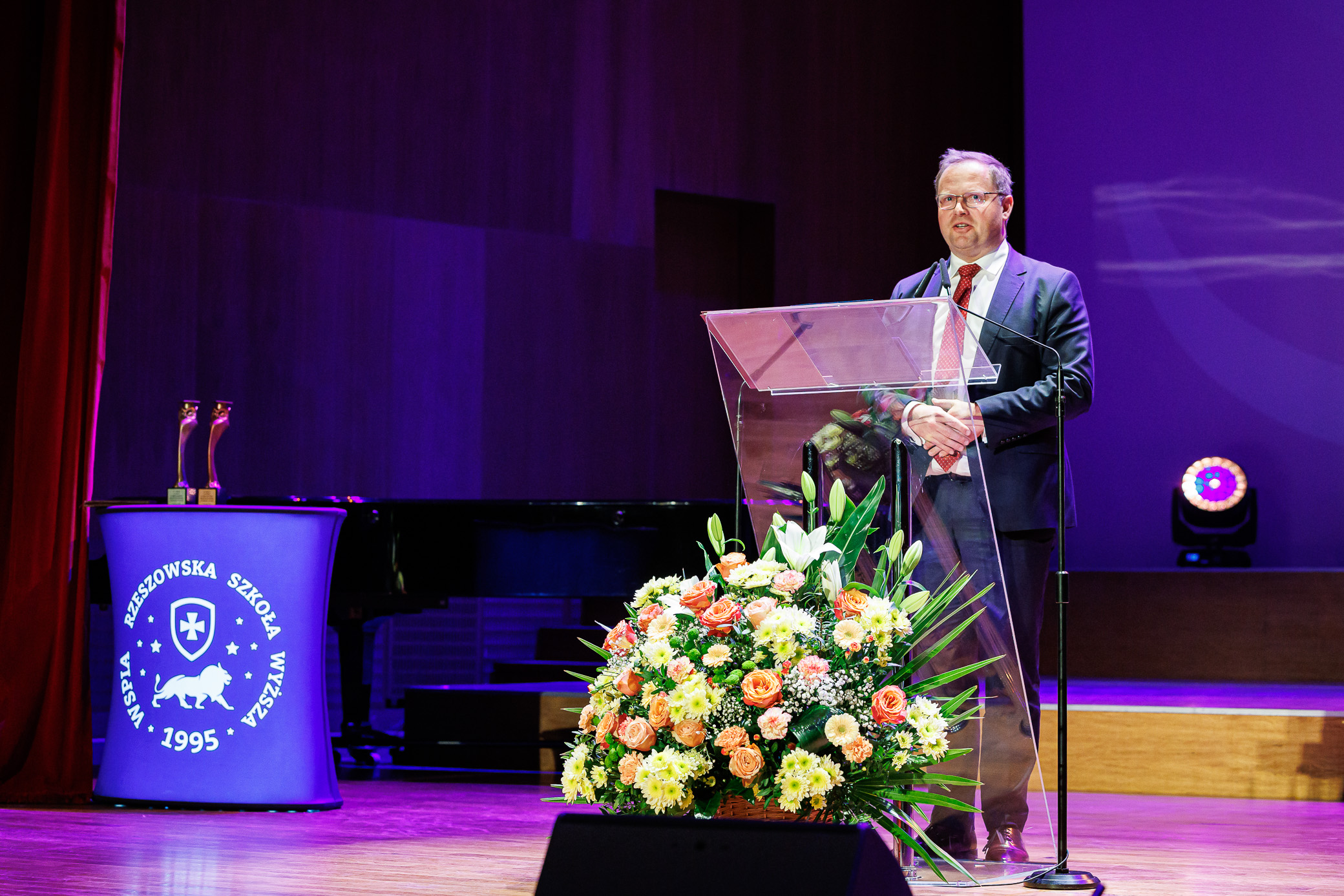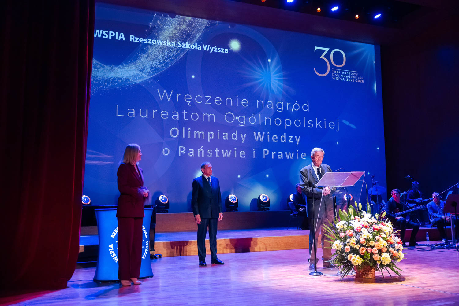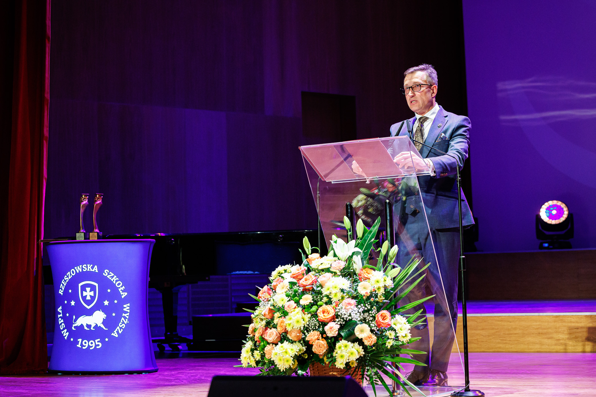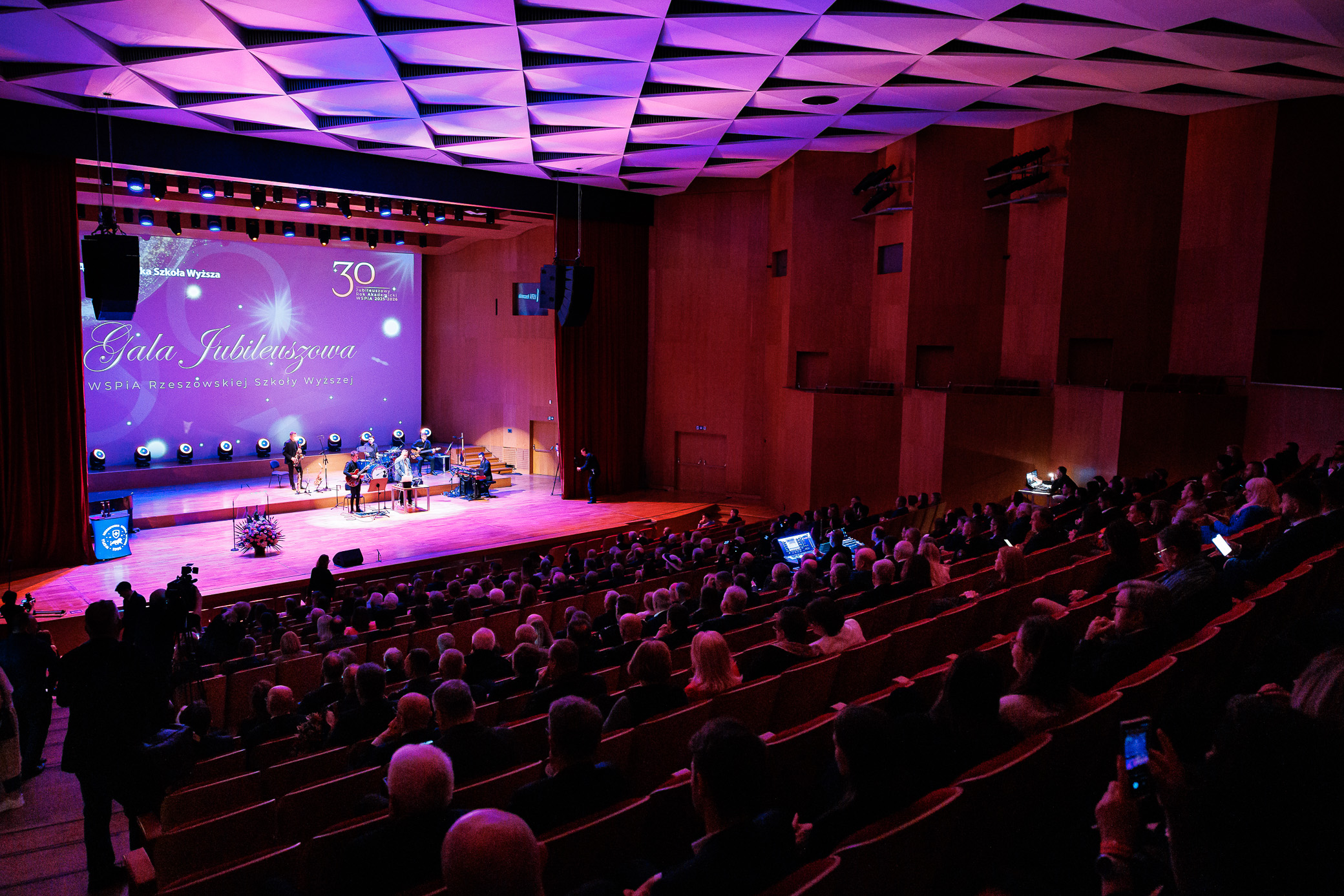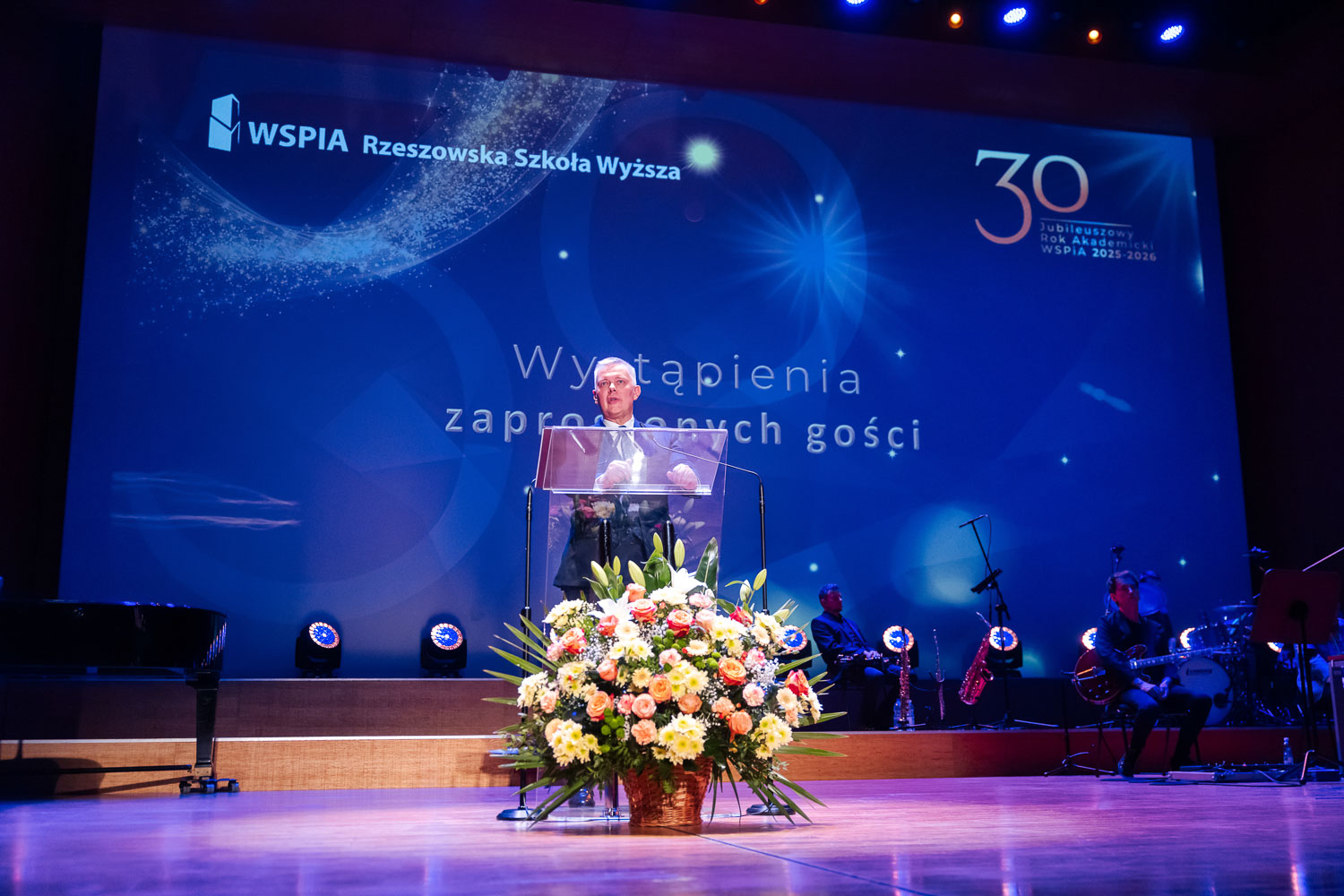 Szanowni Państwo, cóż to był za wieczór! Gala Jubileuszowa WSPiA Rzeszowskiej Szkoły Wyższej zgromadziła przedstawicieli świata nauki, polityki oraz sympatyków i pracowników Uczelni – ludzi, którzy przez lata współtworzyli jej akademicką wspólnotę. Trzy dekady historii spotkały się tego wieczoru w jednej sali, na jednej scenie, splatając się w opowieść o miejscu budującym swoją tożsamość na fundamencie niezwykłych początków. Wydarzeniu towarzyszyły finezyjna muzyka, belferska poezja Ignacego Krasickiego oraz wspomnienia, których czar wypełnił całą Filharmonię Podkarpacką.